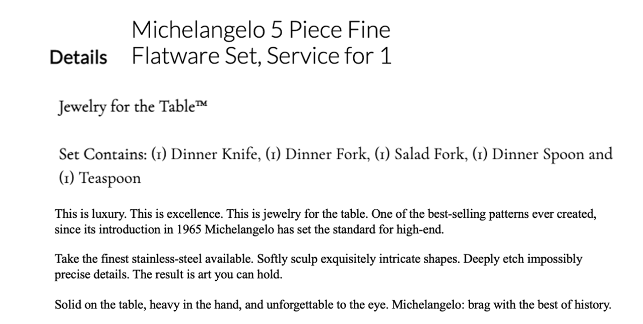 In an era where understated minimalism defines elegance, Oneida struggled to market its most elaborate pattern, Michelangelo. The solution? Lean into the extravagance. By highlighting the luxury and decadence, we transformed it into one of Oneida’s best-selling collections.