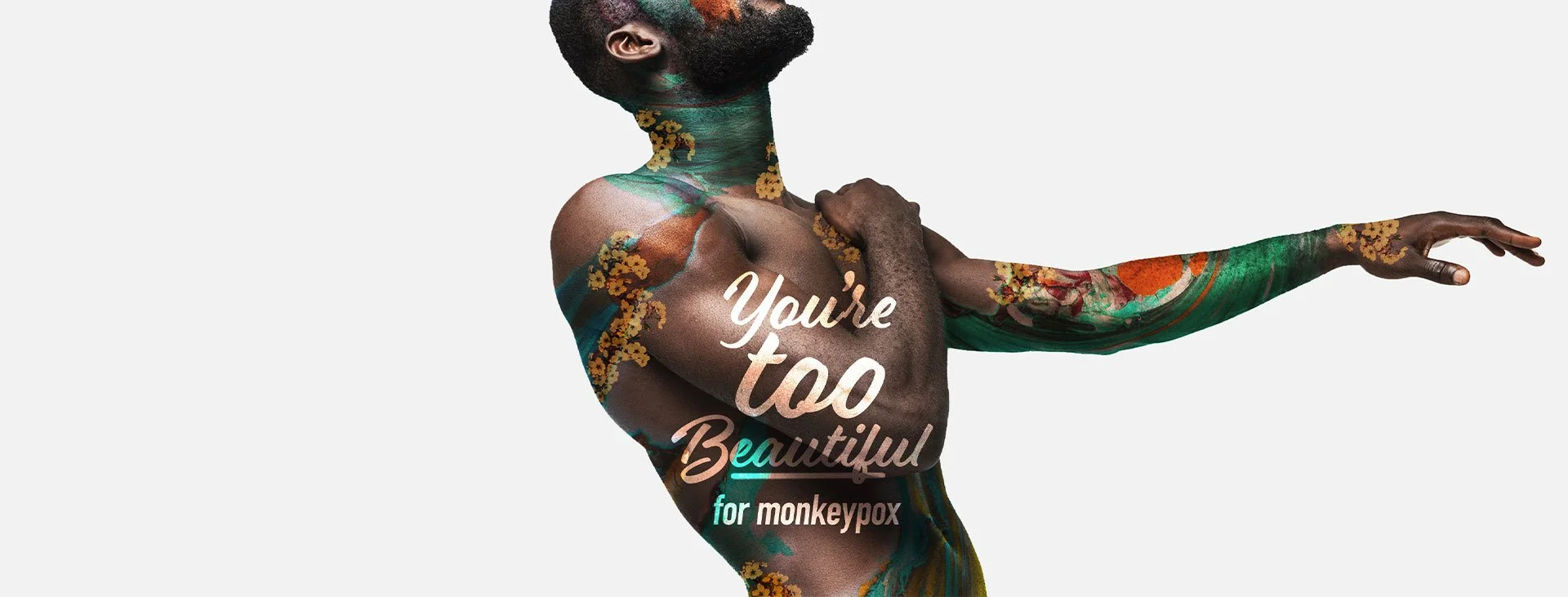 The creative and copy emphasizes self-worth, identity, and beauty with the powerful message, "You're too beautiful for monkeypox.”